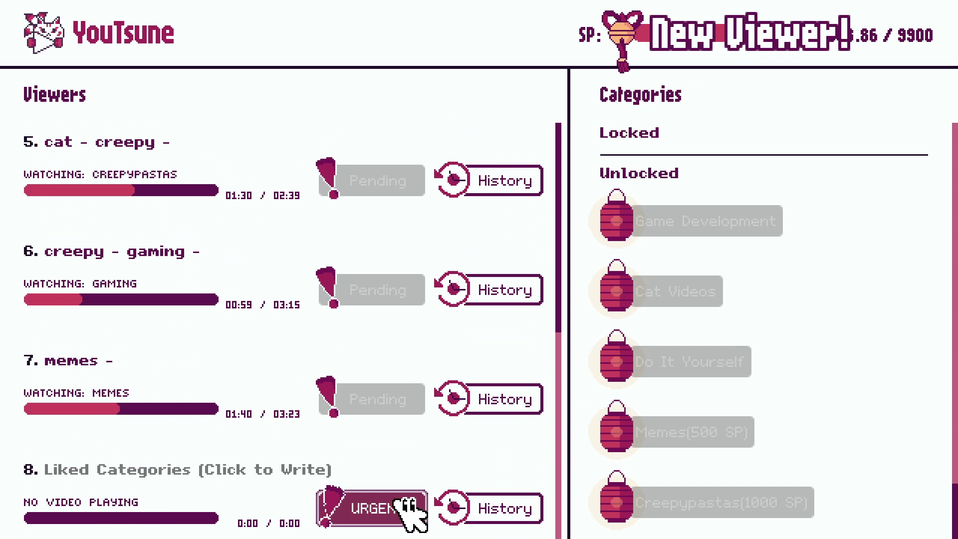 As the YouTsune Algorithm™, your goal is to keep your viewers in the loop by delivering them personalized videos. Dodge bullets, navigate through menus and manage your time!